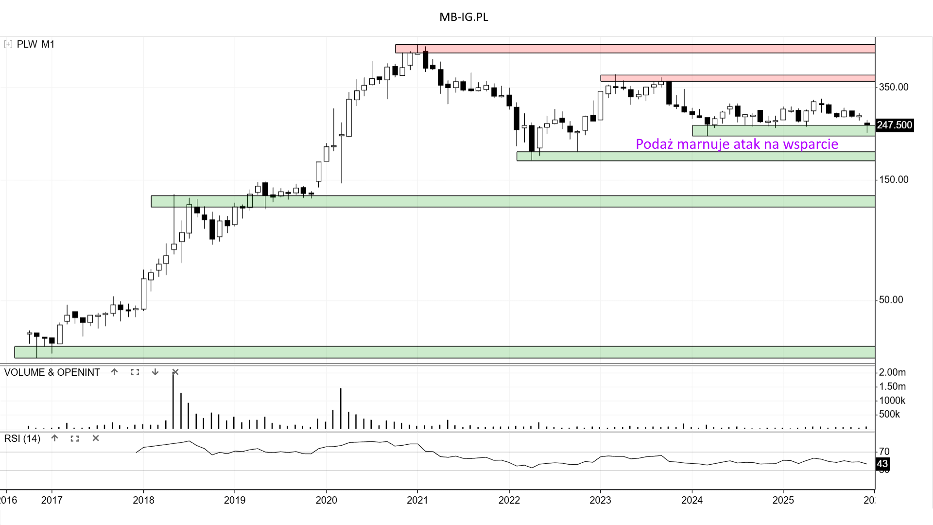 PLW regularnie wypłaca i to rosnącą dywidendę np. 22,55 zł/akcję za 2024 r.