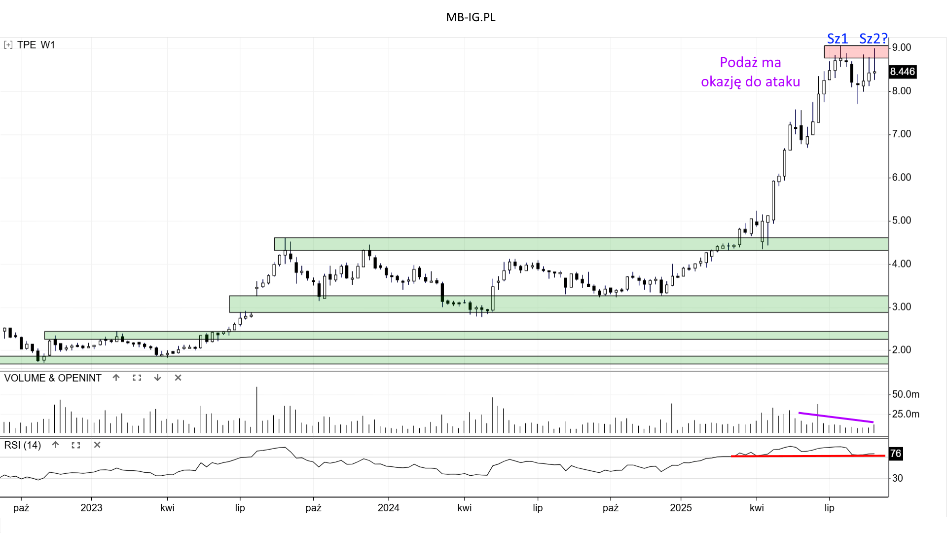 Funkcję wsparcia nr 1 może pełnić rejon +/- 8 zł. To jednak zobaczymy przy ewentualnym teście.