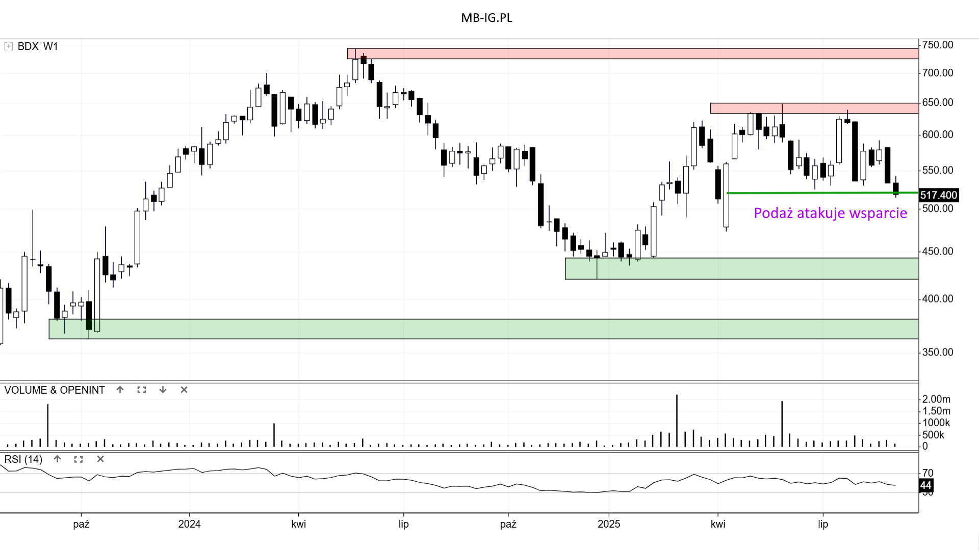 Wiemy, że +/- 44,8 zł to aktualnie wsparcieopór +/- 68 zł. Stąd póki co teoretycznie łatwiej spodziewać się retestu wsparcia na ten moment.
