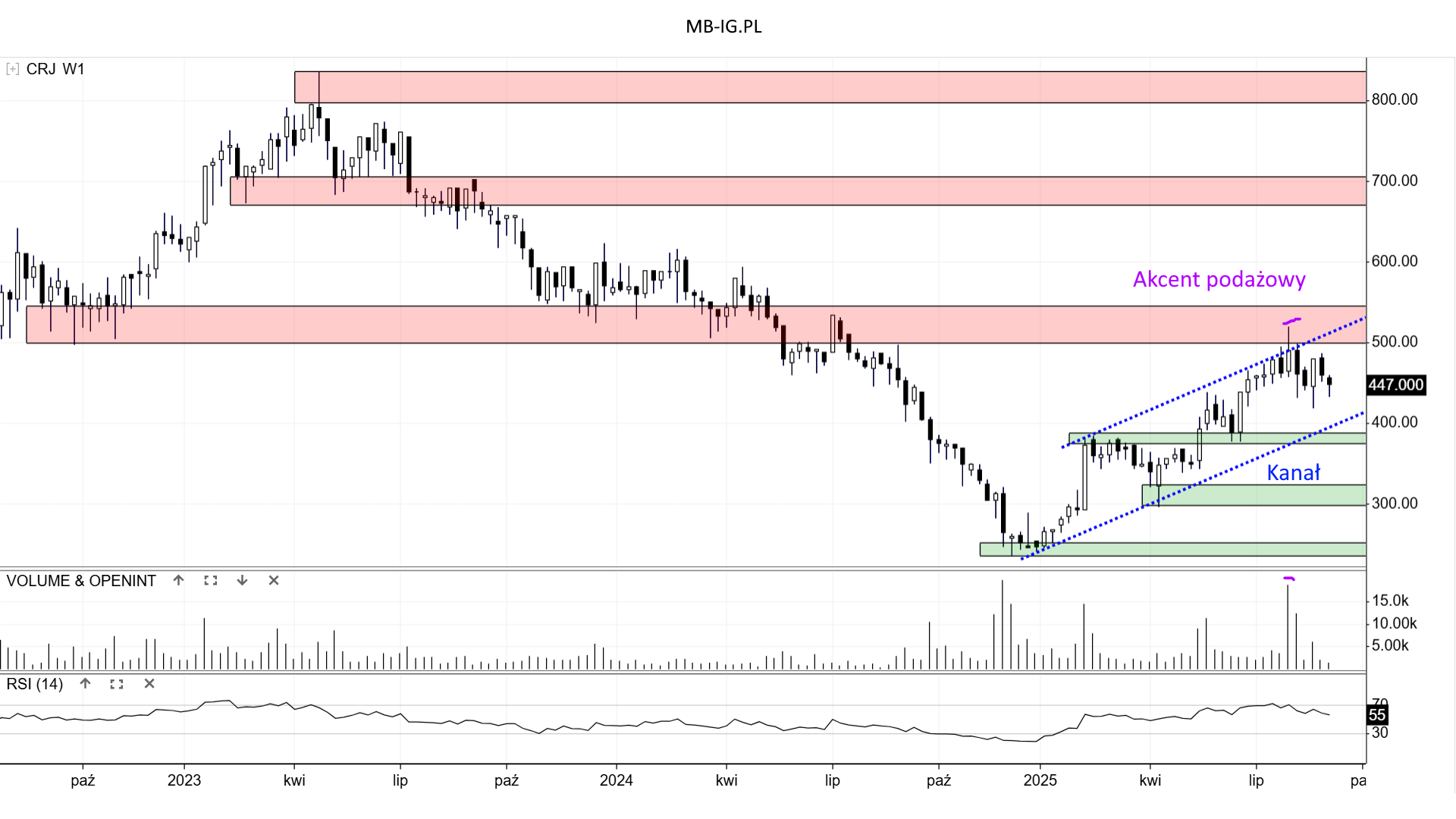 Zapewne działa tu bliskość oporu +/- 524 zł, który jeszcze na przełomie lipca i sierpnia zastopował wzrost.