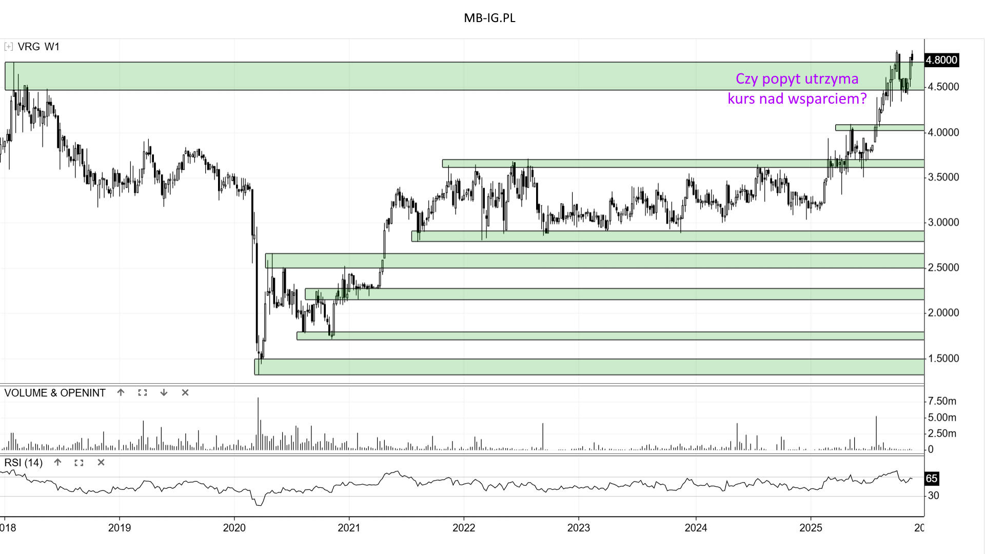 Ciężko „wizualnie” przedstawić wykres tygodniowy VRG, skoro kurs jest najwyżej od ponad 7 lat: