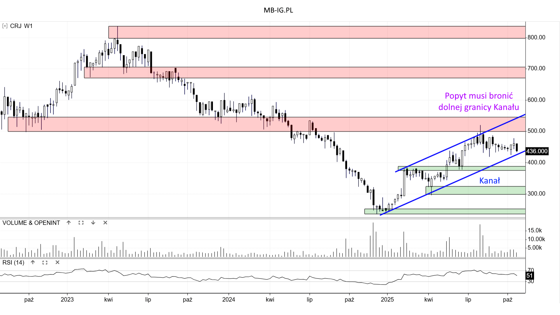 Podaż ma okazję do wybicia układu i przyspieszenia spadku. To by się jednak wiązało z zejściem pod psychologiczny poziom 400 zł.