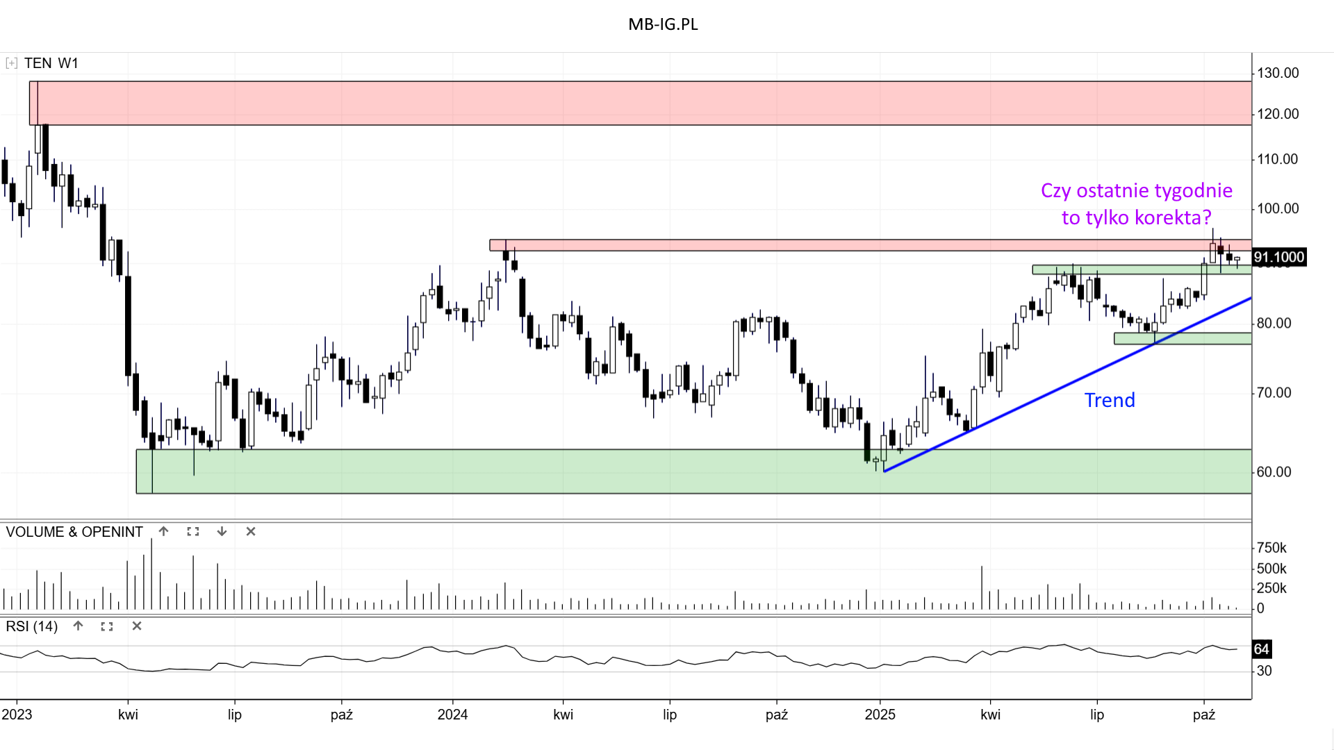 I połowa października była udana dla TEN i kurs zaliczył najwyższe poziomy cenowe od ponad 2 lat: