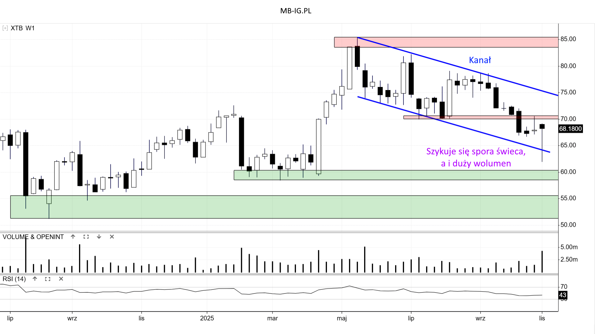 Generalnie od paru miesięcy dominowała podaż, a popyt marnował swoje okazje (omawiałem już w video). Możemy powiedzieć, że potencjalne wybicie Kanału dołem to ryzyko skasowania całego dorobku od wiosny. Ale popyt nie chce odpuszczać jak na razie.