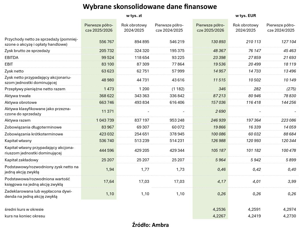 Ambra po wynikach półrocznych