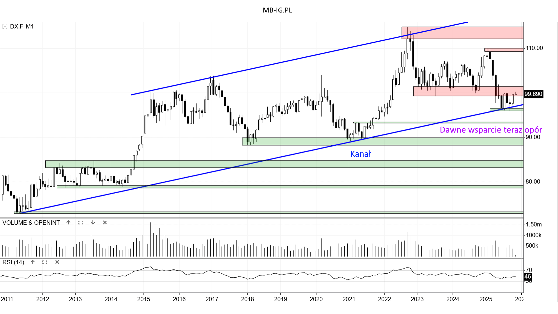 a) Indeks Dolara DX.F nadal w Kanale
