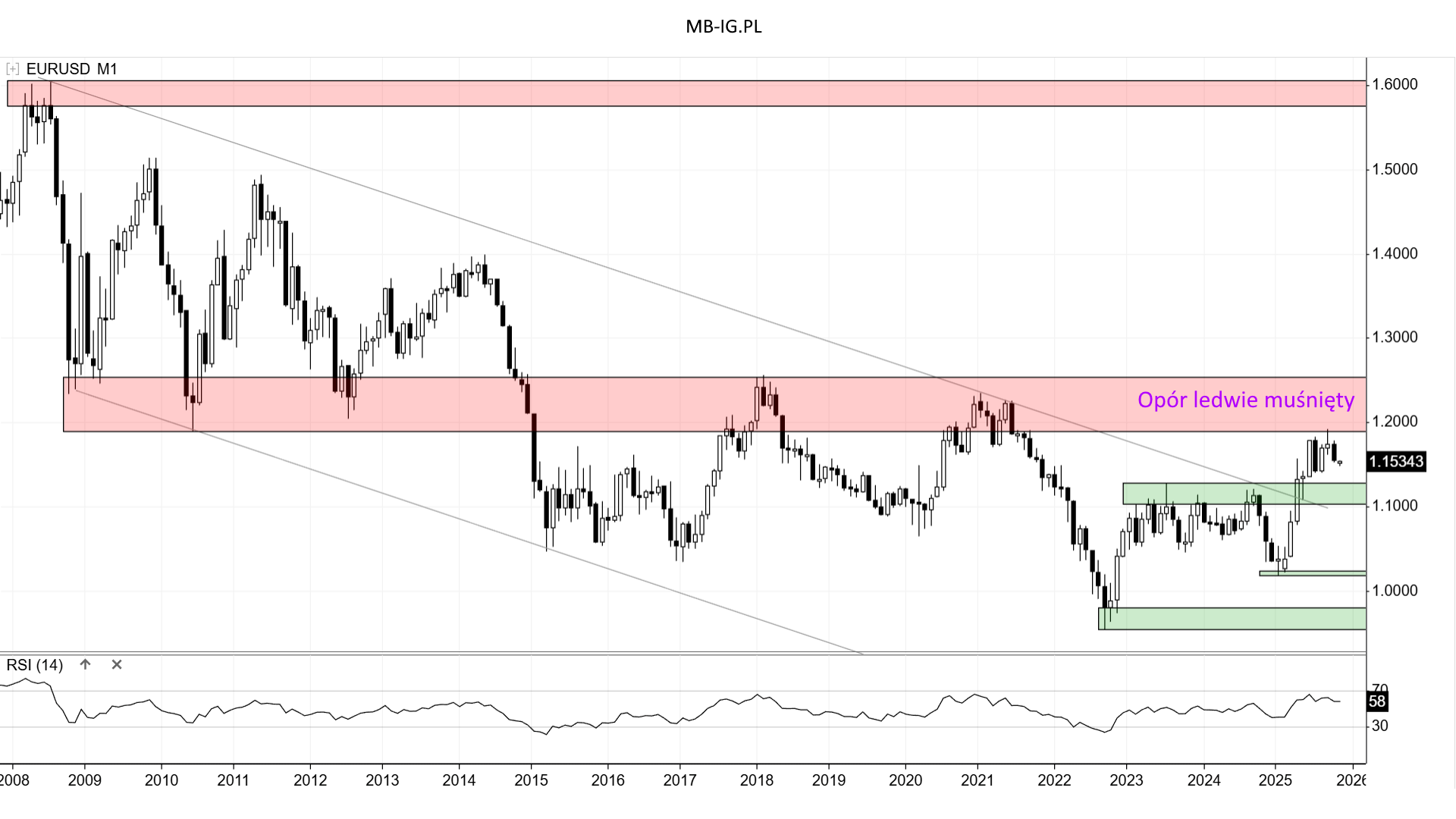 Nieco inaczej ma się ogólnie ruch z perspektywy EURUSD: