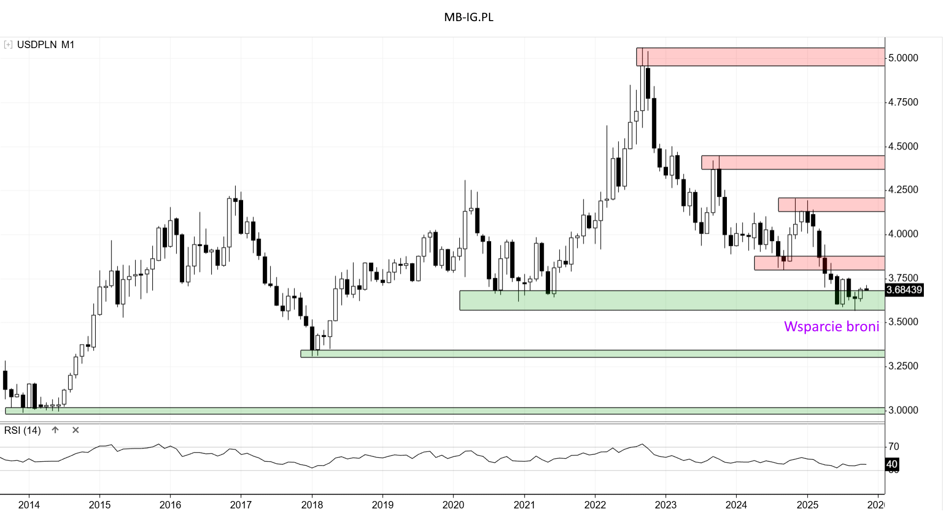 Kurs od miesięcy porusza się między istotnymi ostatnio przedziałami: