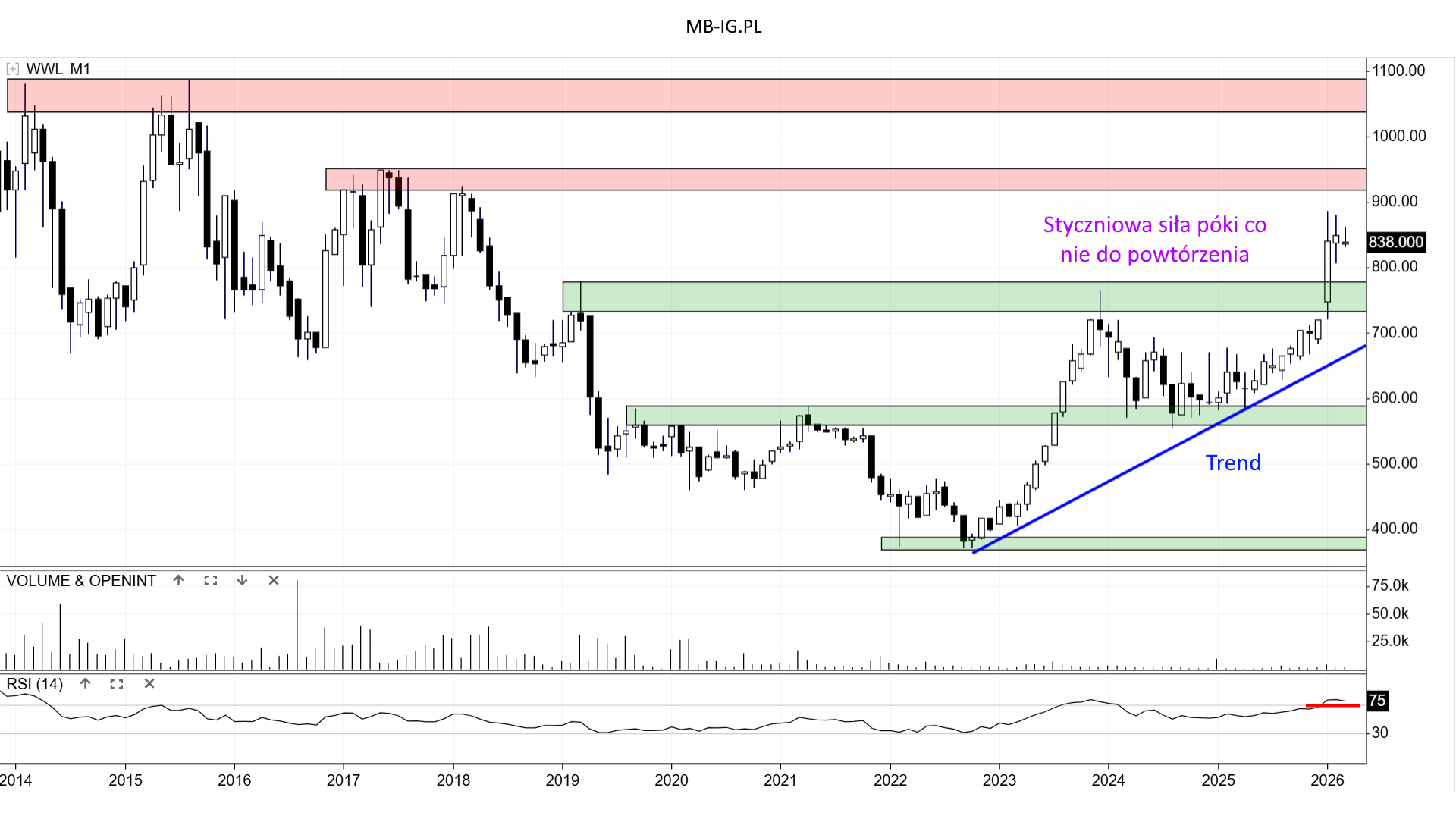 Po styczniowym sukcesie kurs jest zastopowany, choć otoczenie rynkowe jest trudne. Z drugiej strony nawet jakaś wyraźna korekta nie zaszkodzi Bykom.
