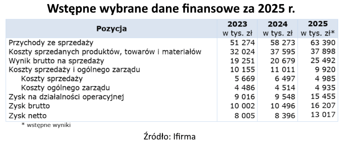 13 lutego firma podała wstępne niezbadane wybrane dane finansowe za 2025 r.: