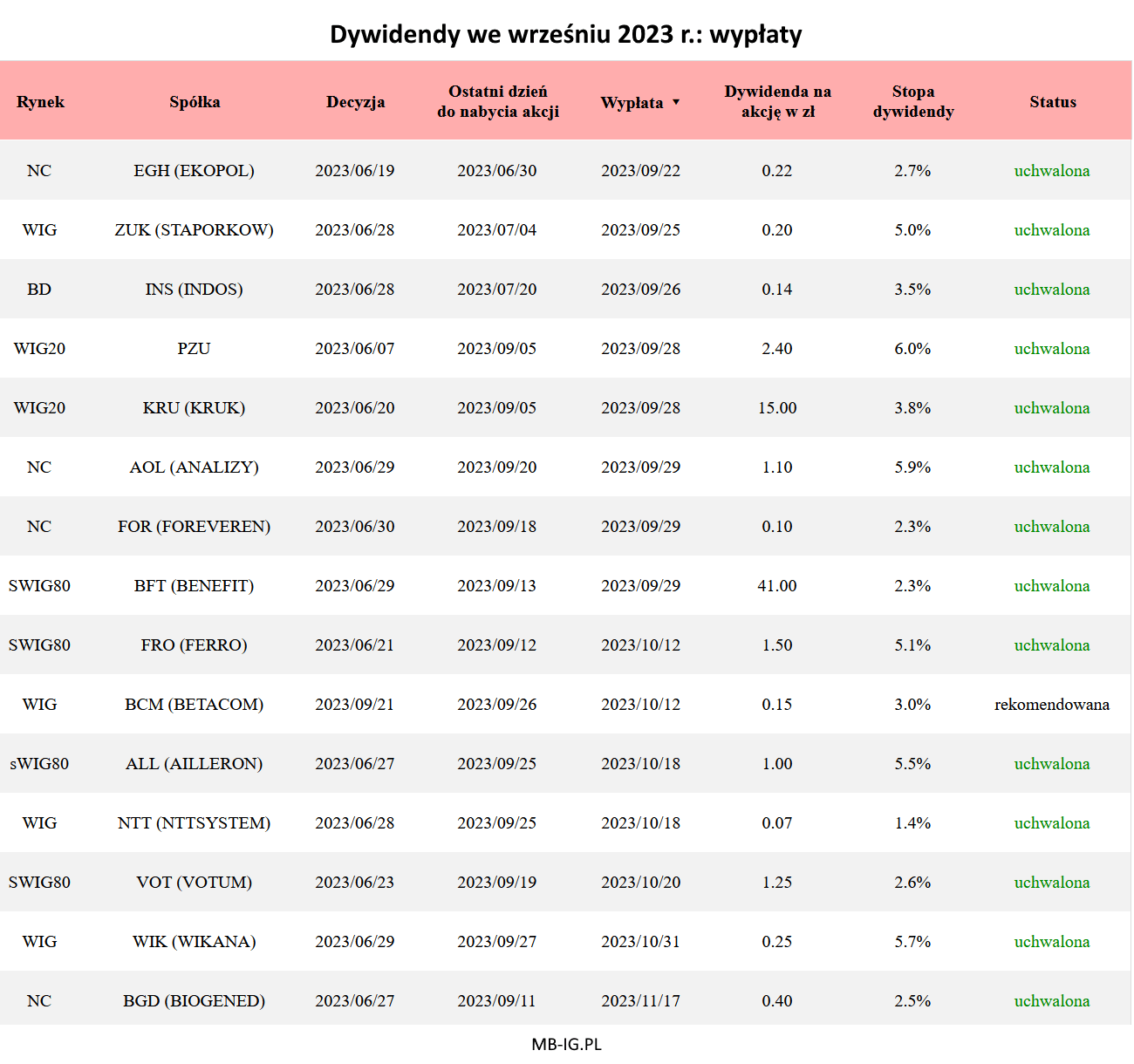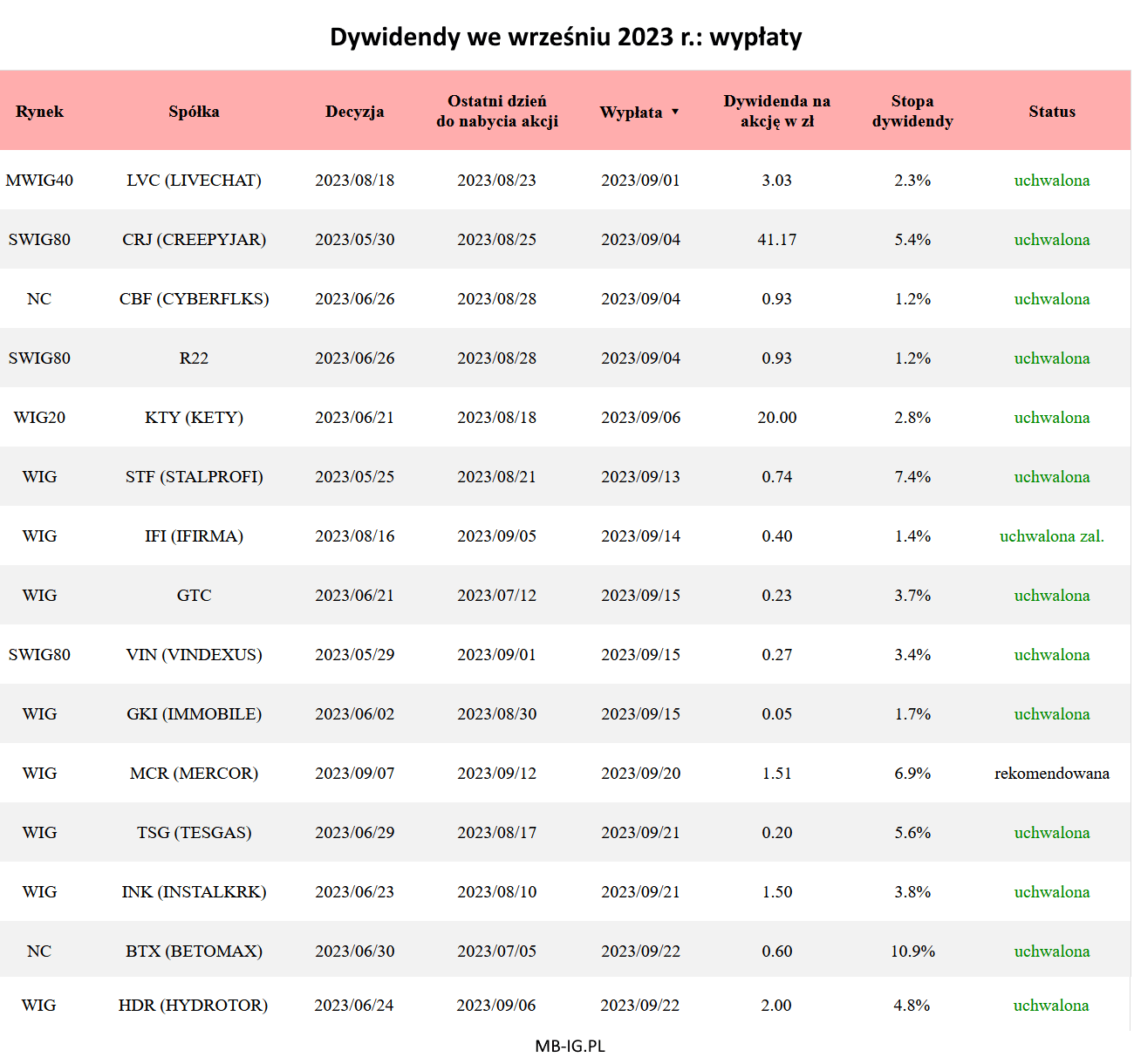 Dywidendy we wrześniu 2023 r.: pozostałe