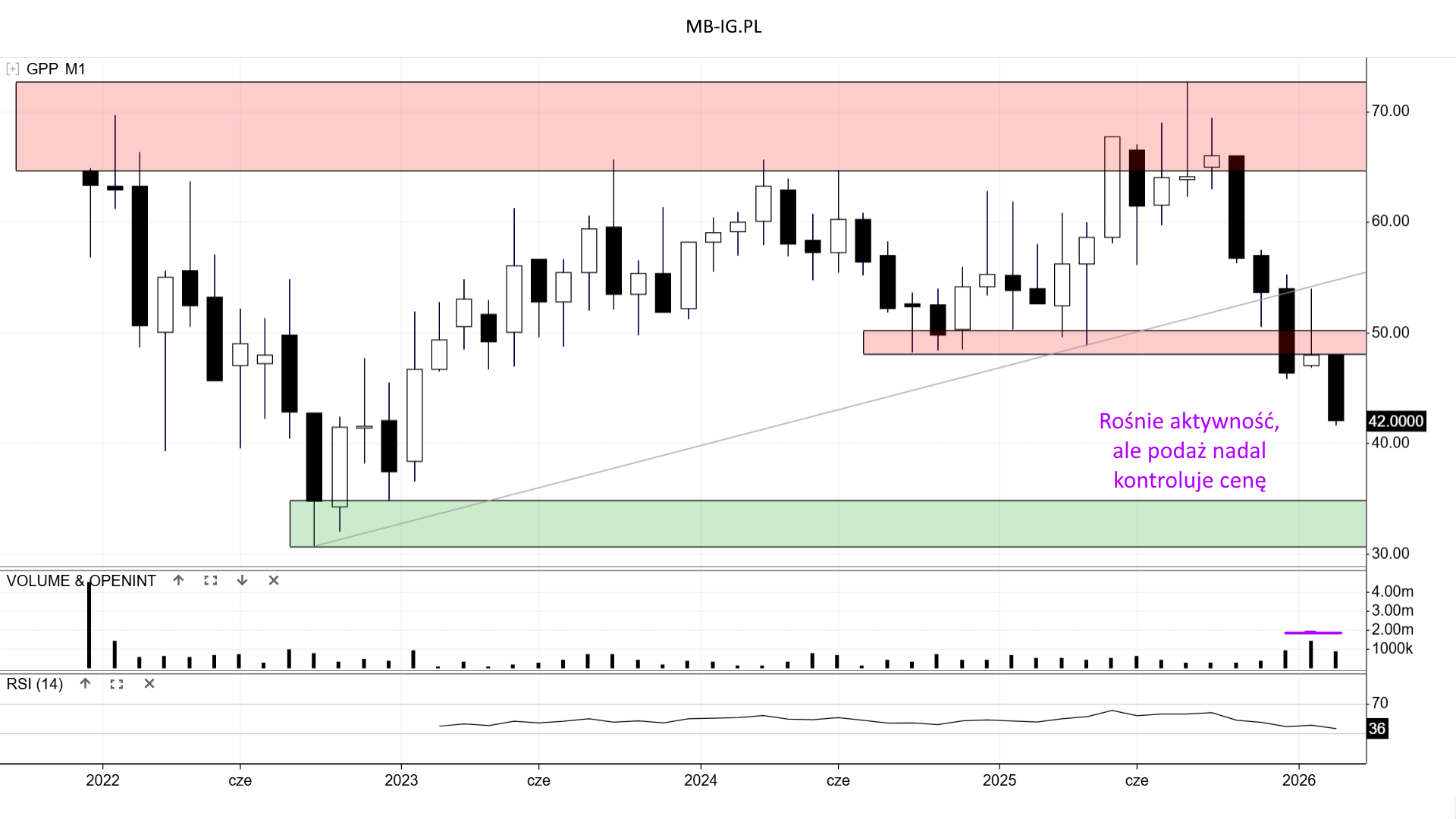 Opór to wspomniane byłe wsparcie. Na razie nie brak prób powrotu na okolice 70 zł.