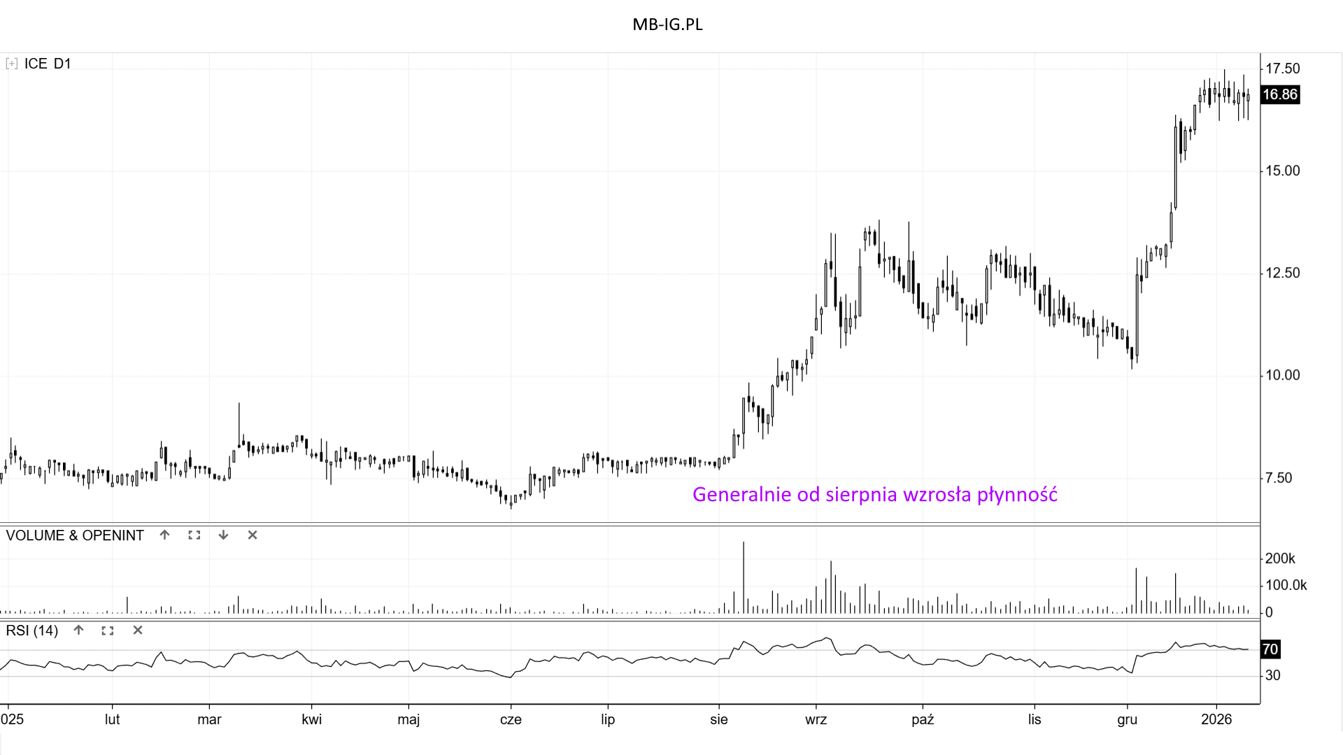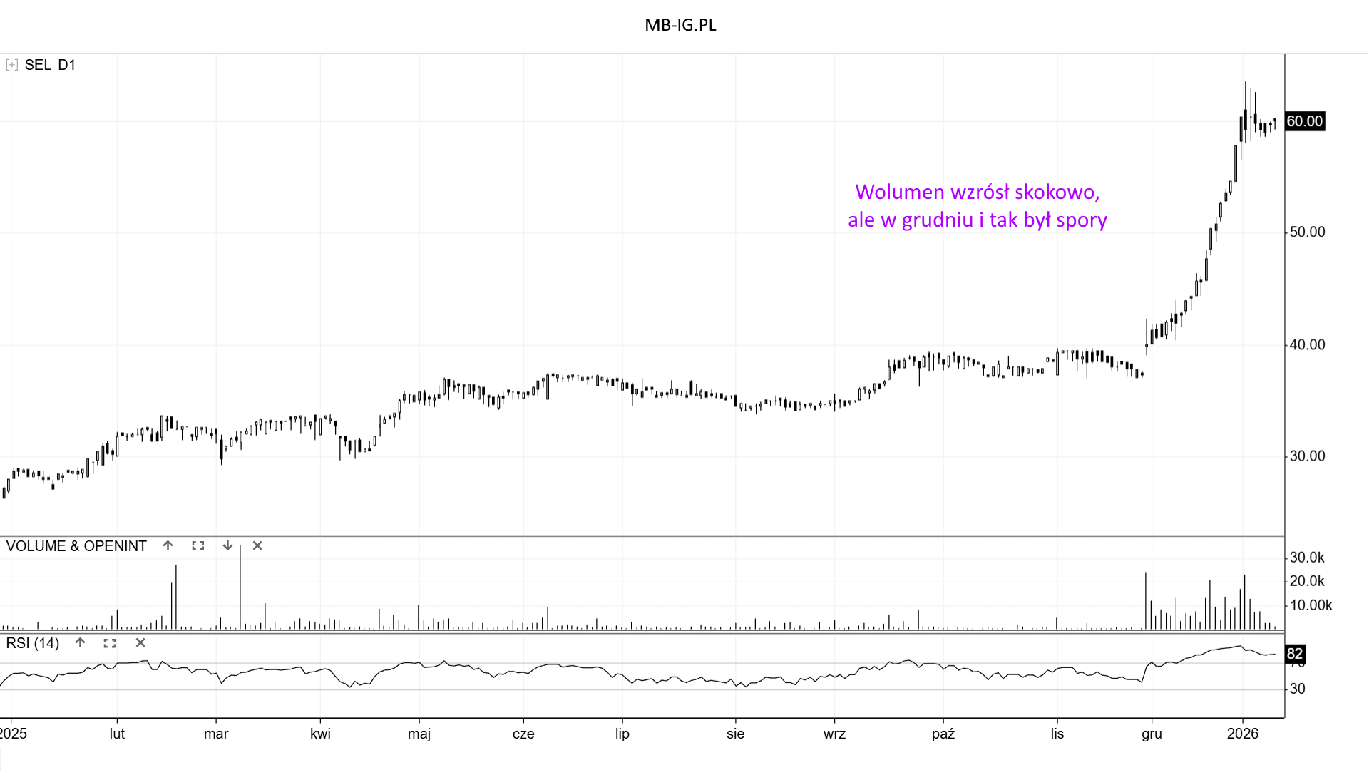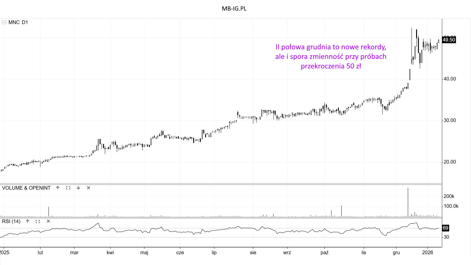 Mimo momentami topornego charakteru ruchu w 2025 r. wzrost postępował. Skocznie w obie strony zaczęło się robić w II połowie grudnia przy próbach przekroczenia psychologicznego poziomu 50 zł.