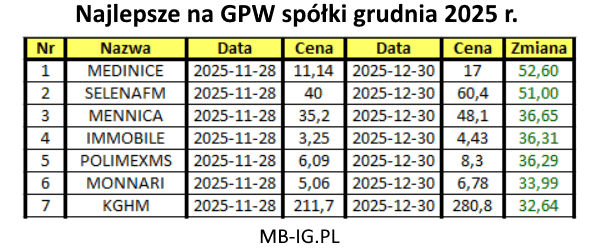 Najlepsze spółki grudnia 2025 r.: podsumowanie