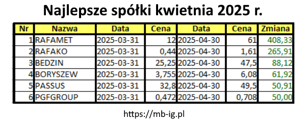 Najlepsze spółki kwietnia 2025 r.: podsumowanie