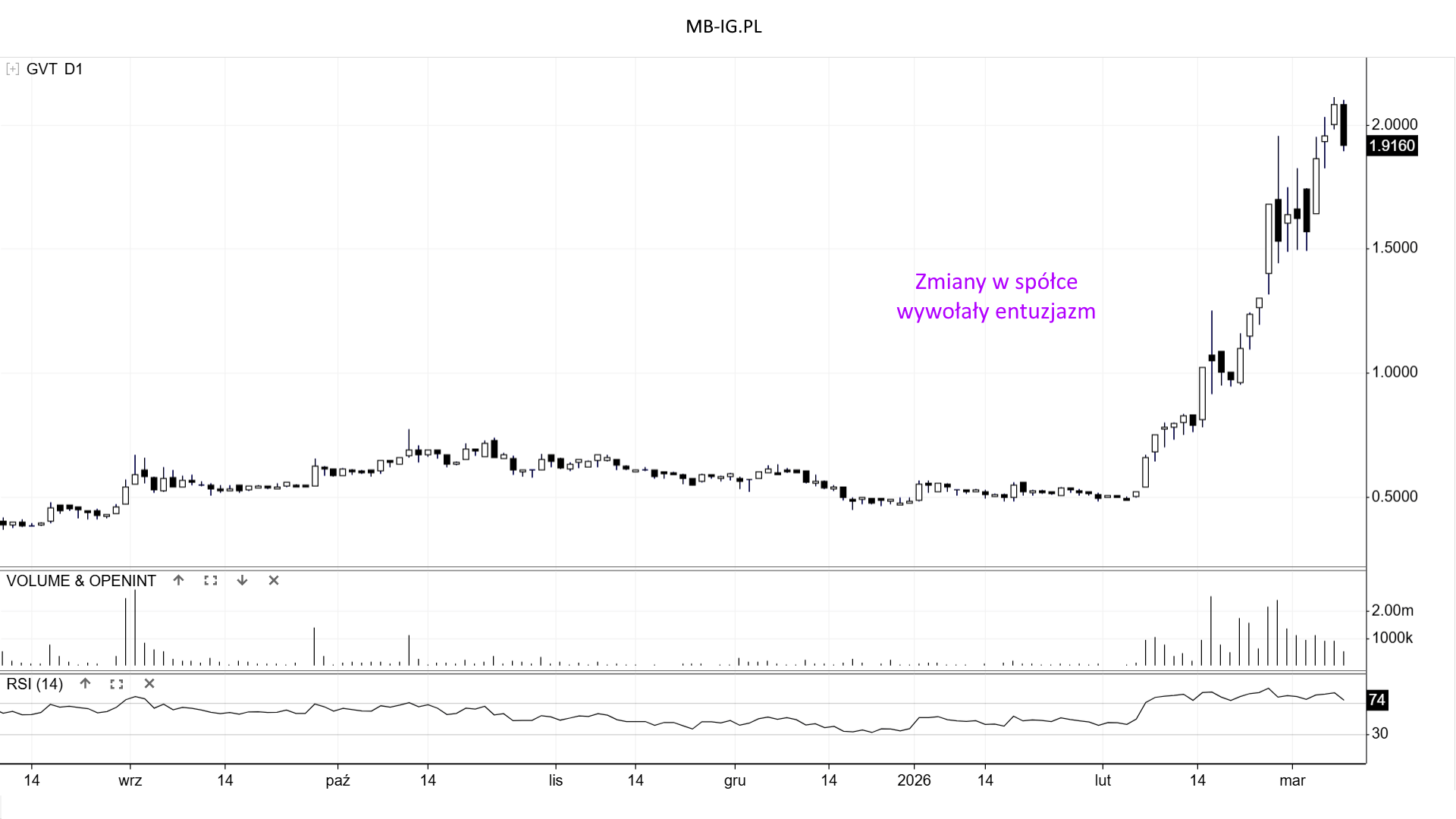 Tu najbardziej owocna była III dekada lutego – zarówno pod kątem wolumenu jak i zachowania kursu. To jednak wystarczyło, by wskoczyć na podium. Wcześniej płynność czasem wyniosła dosłownie 20 akcji/dzień.