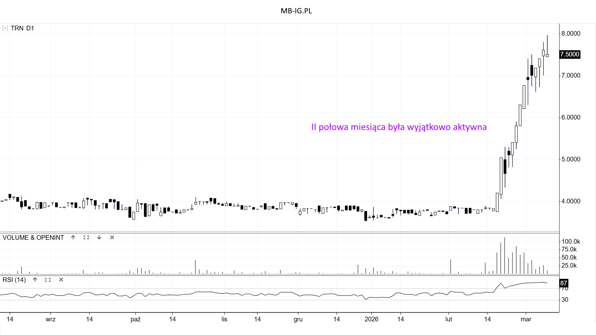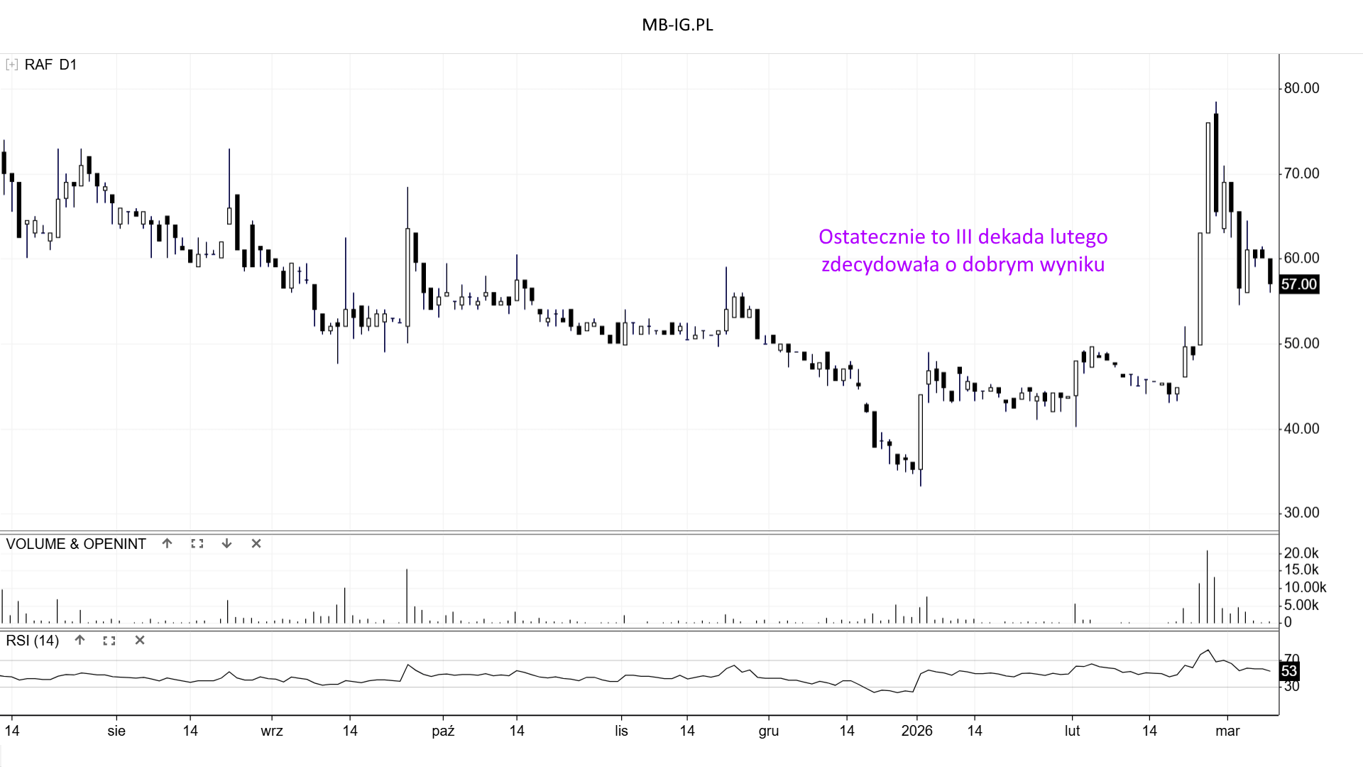 Jeszcze w I dekadzie lutego wyraźnie wzrósł wolumen. Milionowe słupki dotychczas były prawdziwą rzadkością. Siłą rzeczy to przełożyło się na skokowe zachowanie kursu akcji. Choć czasem w obie strony.