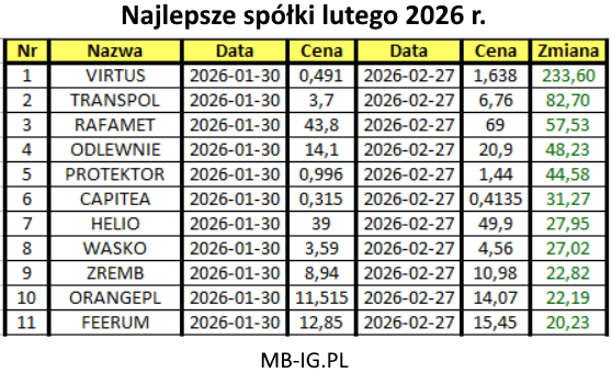 Najlepsze spółki lutego 2026 r.: podsumowanie