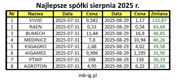 Najlepsze spółki sierpnia 2025 r.: podsumowanie