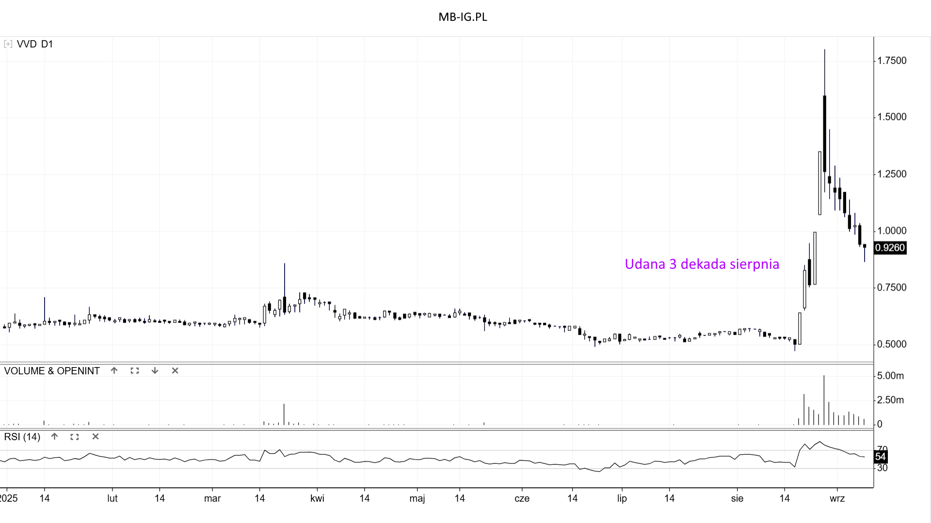 Jak widać interesująca umowa, a nawet plan zmiany, czy rozszerzenie profilu działalności mogą dać kopa kursowi akcji. Wolumen może zaliczać rzadko spotykane poziomy. Choć na pewno akurat na spółkach groszowych łatwo o skrajności.