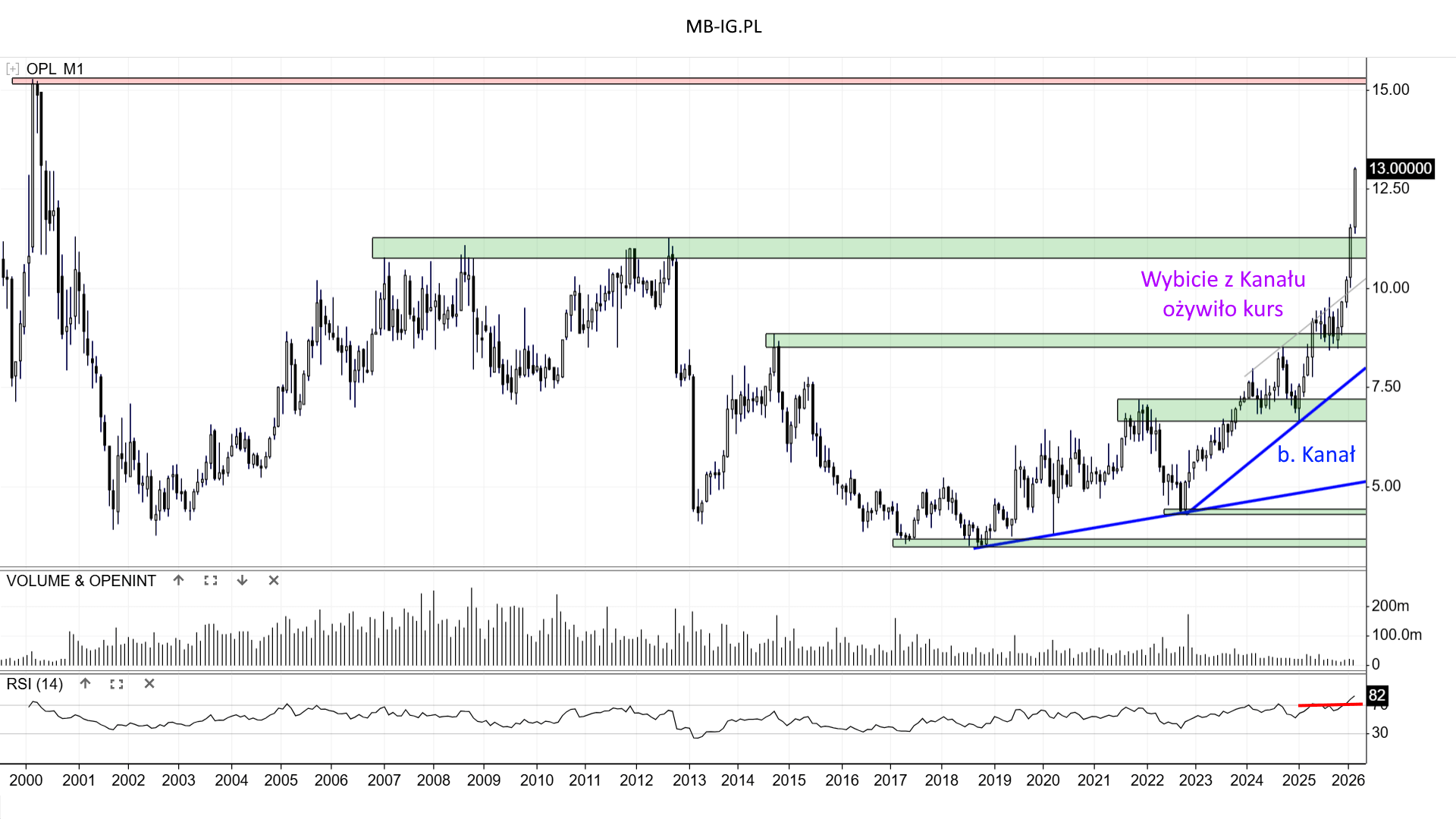 Musiałem jednak „uciąć” wykres, by było coś widać. Stąd nie widać tu oporu z górki +/- 15,2 zł z 2000 roku. Od obecnego wsparcia +/- 11 zł nawet górka lutowe może być problemem. Tyle że podaż musiałaby zacząć działać.