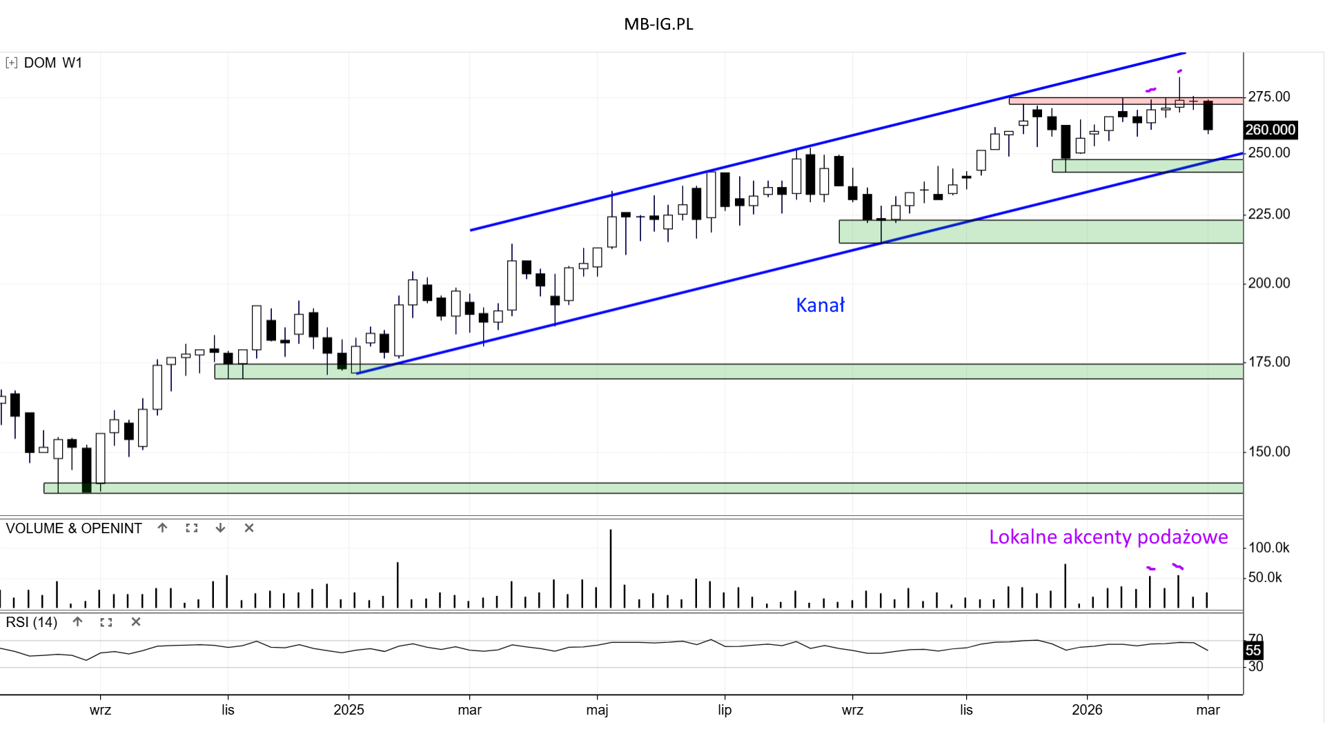 Od roku kurs DOM poruszał się w Kanale wzrostowym: