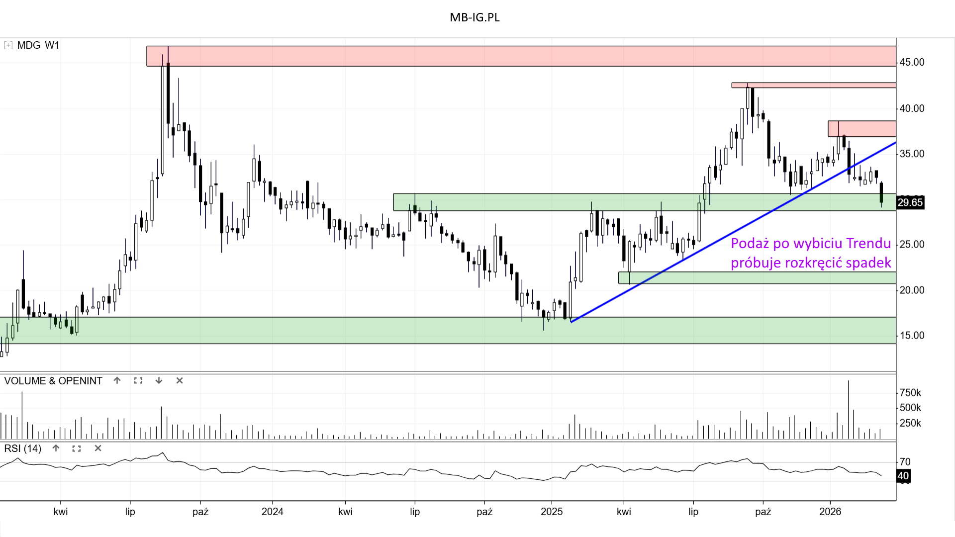 Zapewne jako opór może działać uciekający w górę wybity Trend, który wyszedł już nad 35 zł.
