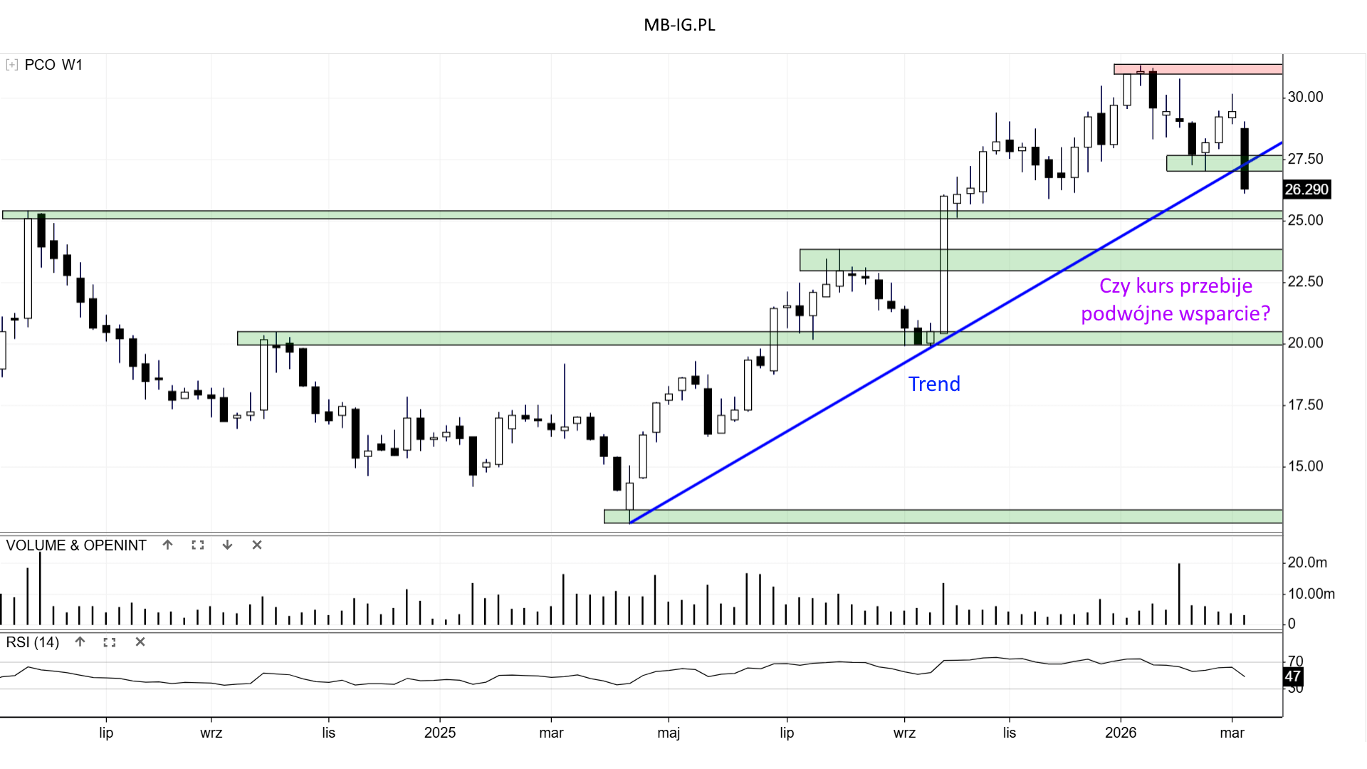 Po tzw. ABB kurs Pepco miał kłopot z atakiem na szczyty tegoroczny i opór +/- 31,2 zł: