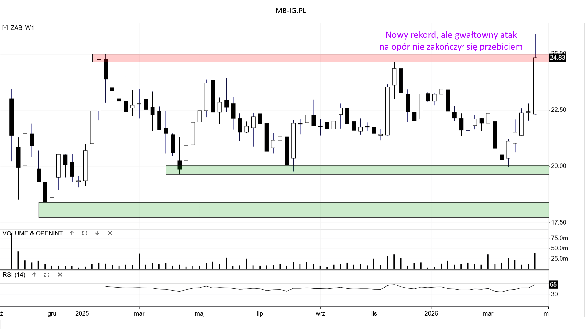 Z drugiej strony popyt zmarnował ostatecznie atak na opór +/- 24,8 zł. Gdyby podaż skutecznie skontrowała na wsparcie pod 20 zł, to nic by się tu nie zmieniło.