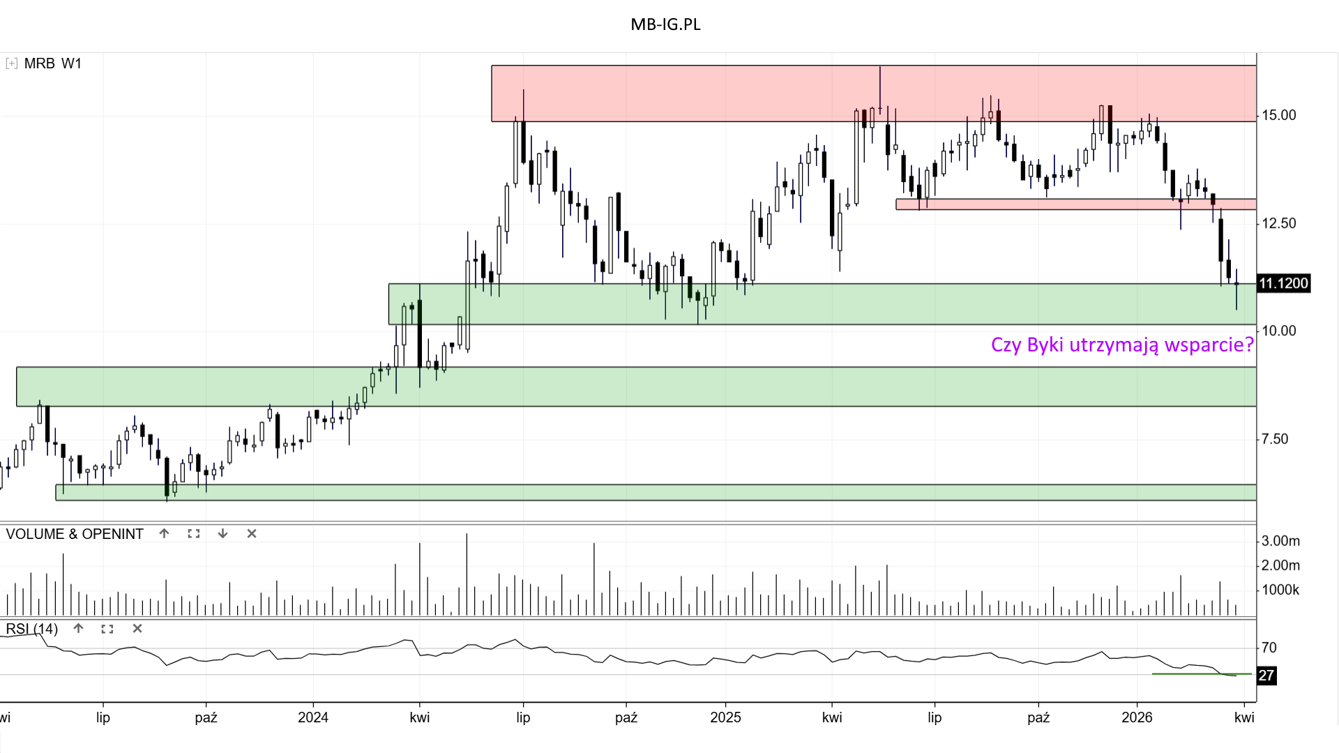 Podaż, nawet z choćby jakąś korektą, ma za zadanie wybić je wyraźnie. To doprowadzi do zejścia pod psychologiczny poziom 10 zł i umożliwi skasowanie łącznie 2 lat zwyżki.