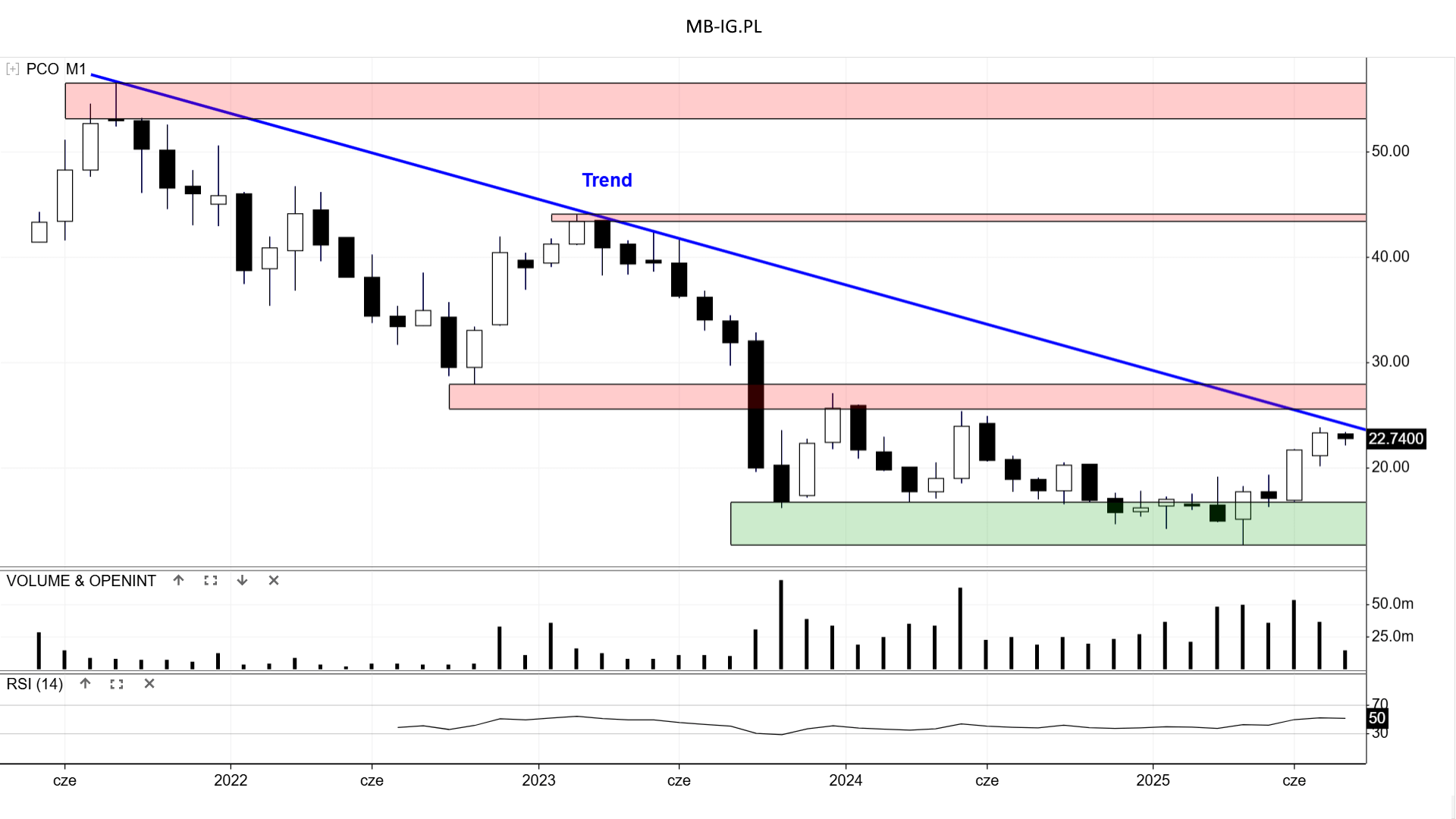Długoterminowe zachowanie kursu Pepco to prosty przykład na ukształtowanie Trendu spadkowego: