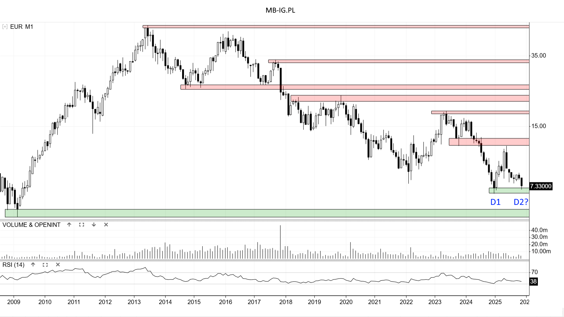 Podaż nie musi przebić z marszu dołków, więc nawet jakaś korekta spadku nie byłaby problemem. Do oporu nr 1 przy +/- 12,4 zł jest daleko, więc najlepiej by było nie dopuścić do jego testu.