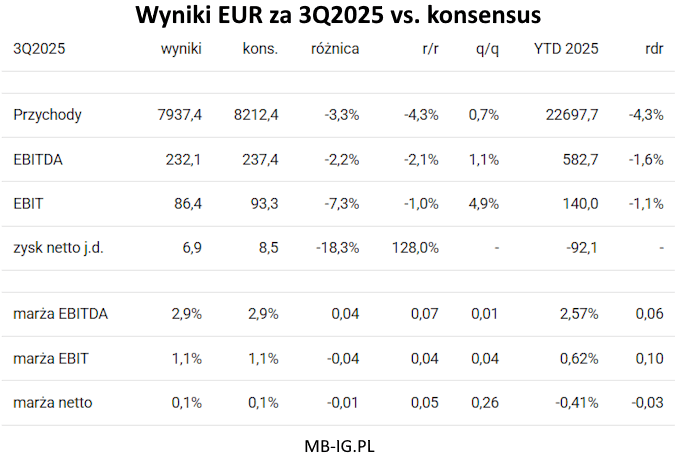 Wyniki Eurocash 3Q2025 vs. konsensus
